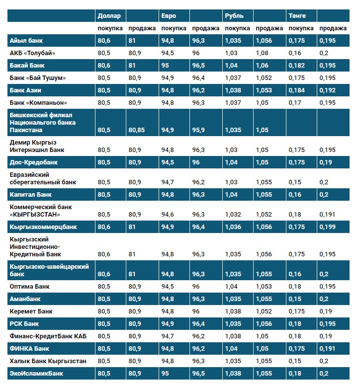 Курс доллара в коммерческих банках Кыргызстана на 21 октября