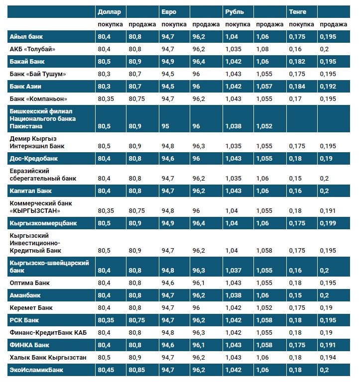 Курс доллара в коммерческих банках Кыргызстана на 22 октября