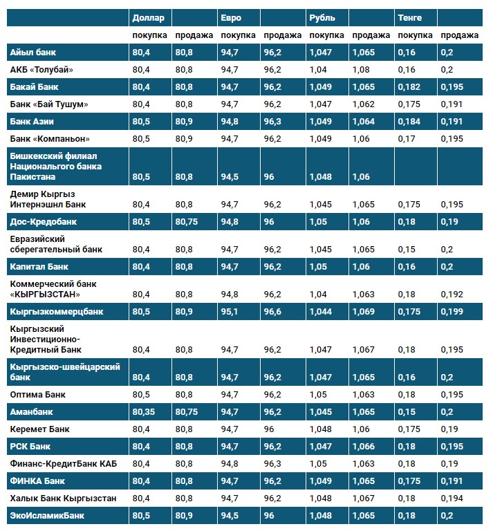 Курс доллара в коммерческих банках Кыргызстана на 26 октября