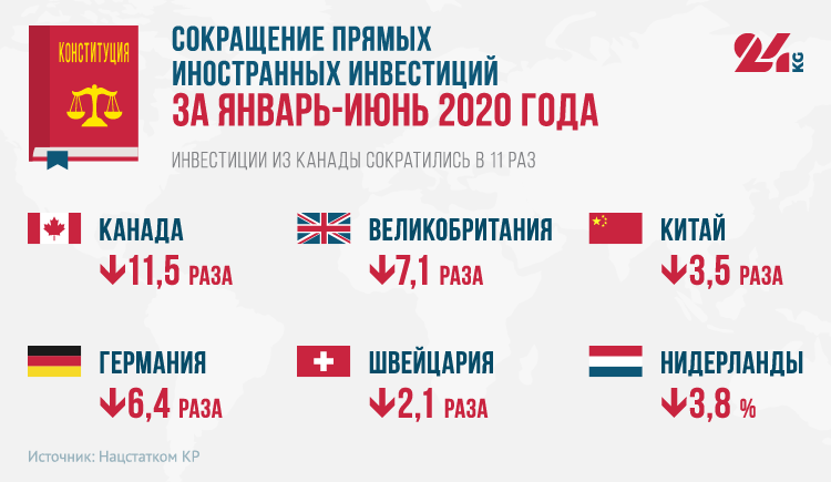По данным Национального статистического комитета, в январе-июне 2020 года приток прямых иностранных инвестиций по сравнению с прошлым годом сократился в 2,4 раза и составил лишь $164,4 миллиона. При этом приток денег из стран дальнего зарубежья сократился в 2,7 раза.