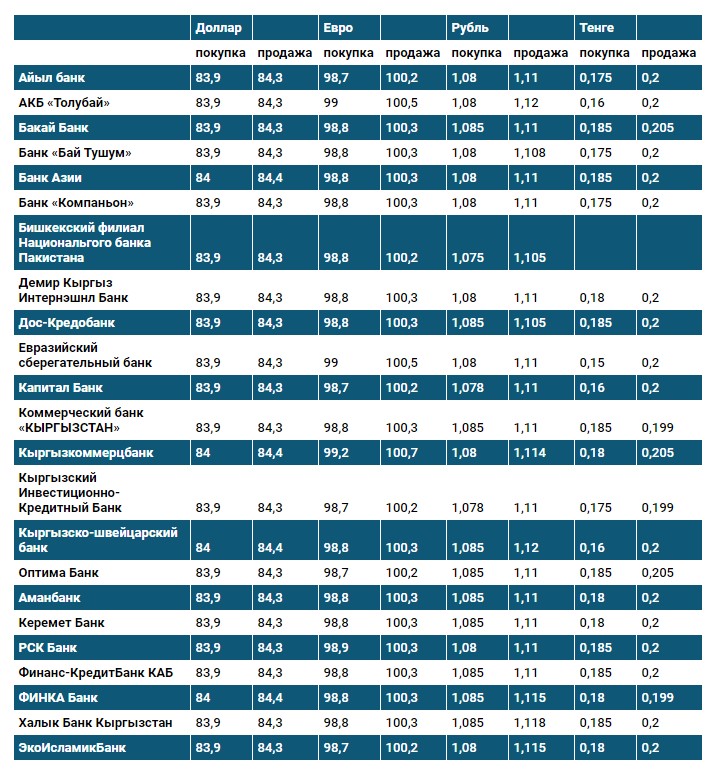 Курс доллара в коммерческих банках Кыргызстана на 11 ноября