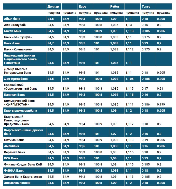 Курс доллара в коммерческих банках Кыргызстана на 13 ноября