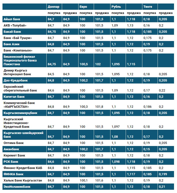 Курс доллара в коммерческих банках Кыргызстана на 17 ноября