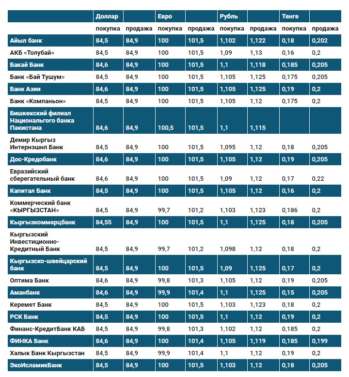 Курс доллара в коммерческих банках Кыргызстана на 18 ноября