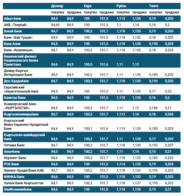 Курс доллара в коммерческих банках Кыргызстана на 25 ноября
