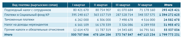 Всего за время работы компании с 1994 по 2020 год выплаты на территории Кыргызстана превысили $4,48 миллиарда.