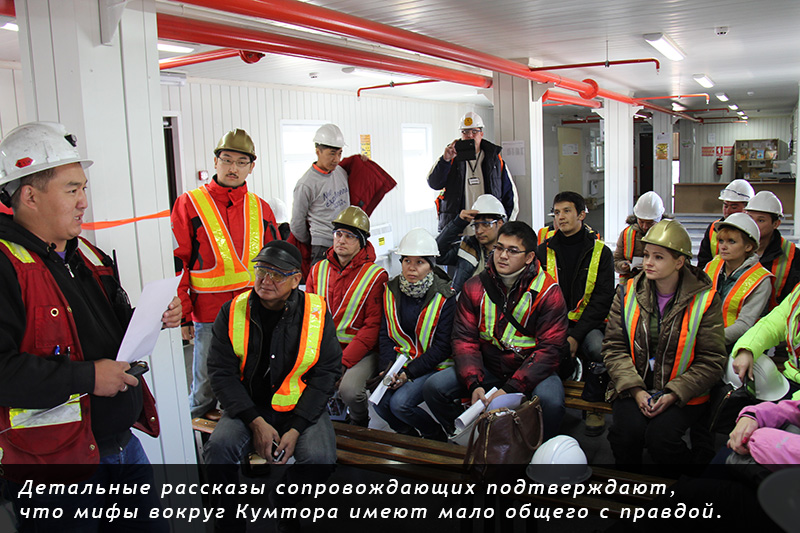 Очередную группу визитеров кумторовцы встретили радушно. Программы посещений отработали до автоматизма. Проверка документов и досмотр, комплект спецобмундирования (горные ботинки, светоотражающие жилеты, каски и очки), медосмотр (из-за резкого перепада давления и недостатка кислорода на высоте «новички», случается, чувствуют себя неважно) и инструктаж по технике безопасности. На режимном объекте жесткие требования, которые должны беспрекословно выполнять и сотрудники компании, и гости во избежание неприятностей.