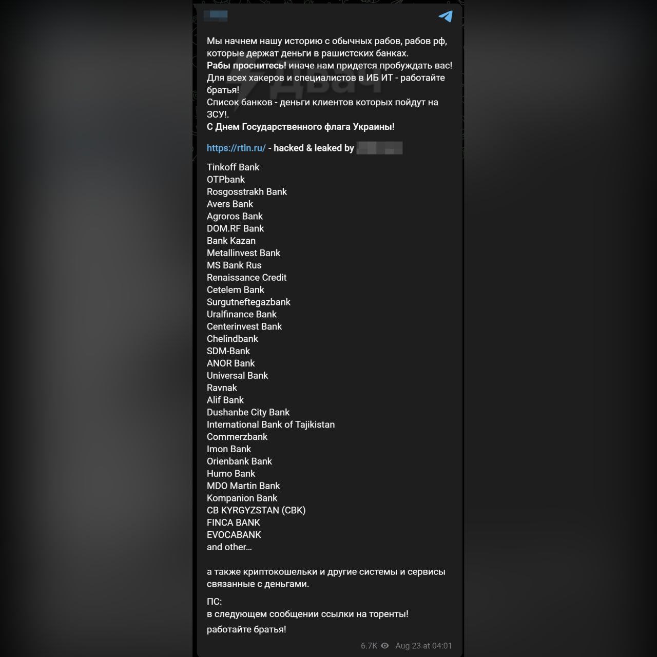 Среди опубликованного списка банков, доступ к данным которым получили хакеры, значатся банки «КЫРГЫЗСТАН» и «FINCA Банк».