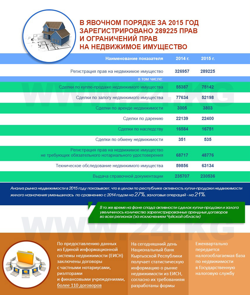 По ее данным, за год в явочном порядке зарегистрировано 289 тысяч 225 прав и их ограничений на недвижимость. Это на 11,5 процента меньше, чем в 2014-м. Также снизилось (на 26,3 процента) и число сделок купли-продажи – до 55 тысяч 387. А вот число сделок по аренде недвижимости за год, наоборот, выросло на 26,6 процента – до 3,8 тысячи.