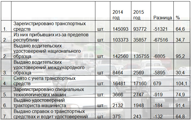 Как отмечается, за 12 месяцев 2015 года зарегистрировано 93 тысячи 772 единицы транспорта и прицепов. В 2014-м цифра была больше – 145 тысяч 93. Большую часть автомобилей – 35 тысяч 857 - привезли из-за границы. По итогам 2014-го показатель был в разы выше: 103 тысячи 373 автомобиля и прицепа.