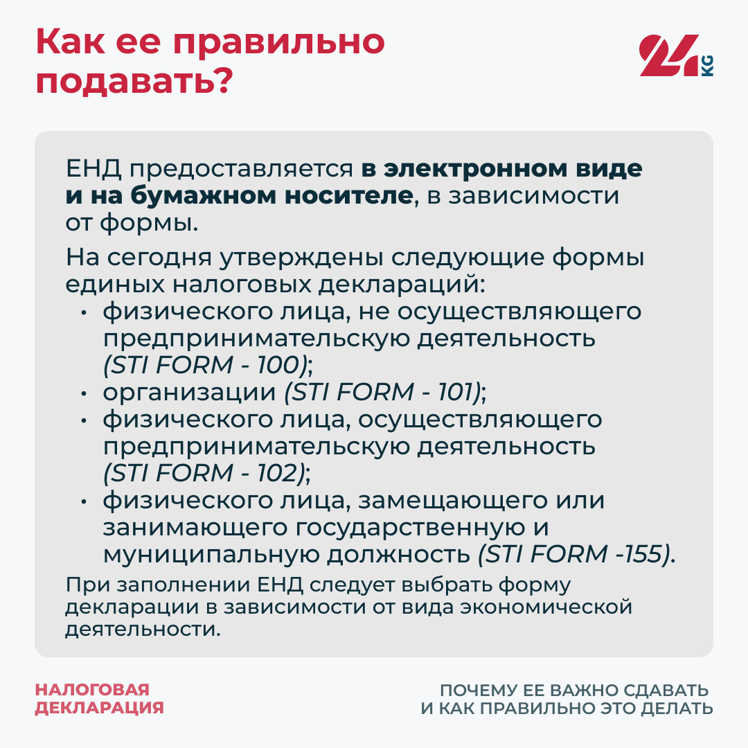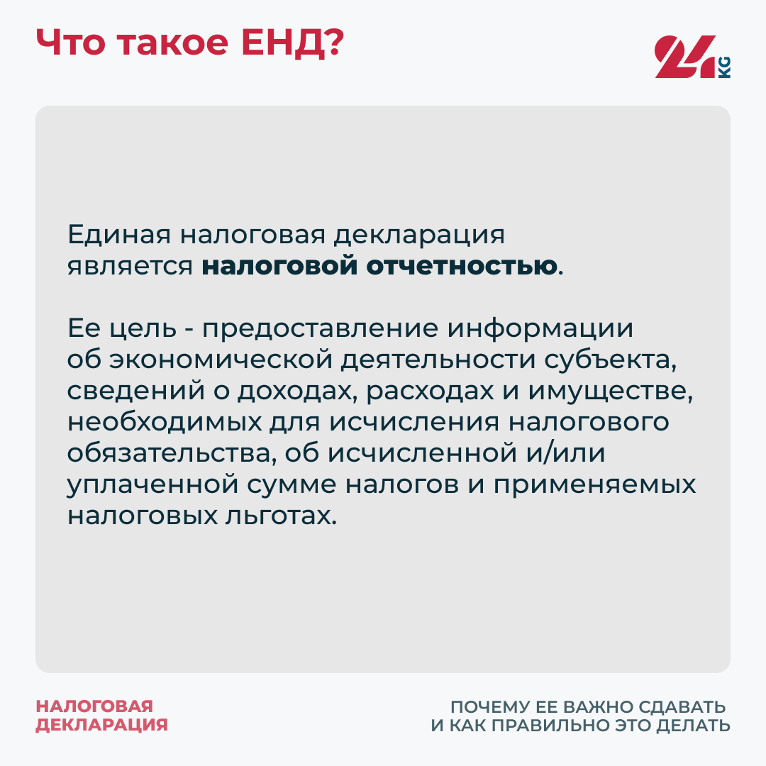 В Государственной налоговой службе рассказали 24-kg.com, как ее правильно сдавать и какие могут быть штрафы за несвоевременную подачу ЕНД.