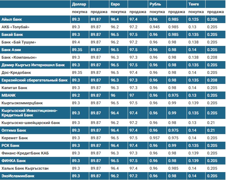 Курс доллара в коммерческих банках Кыргызстана на 5 апреля