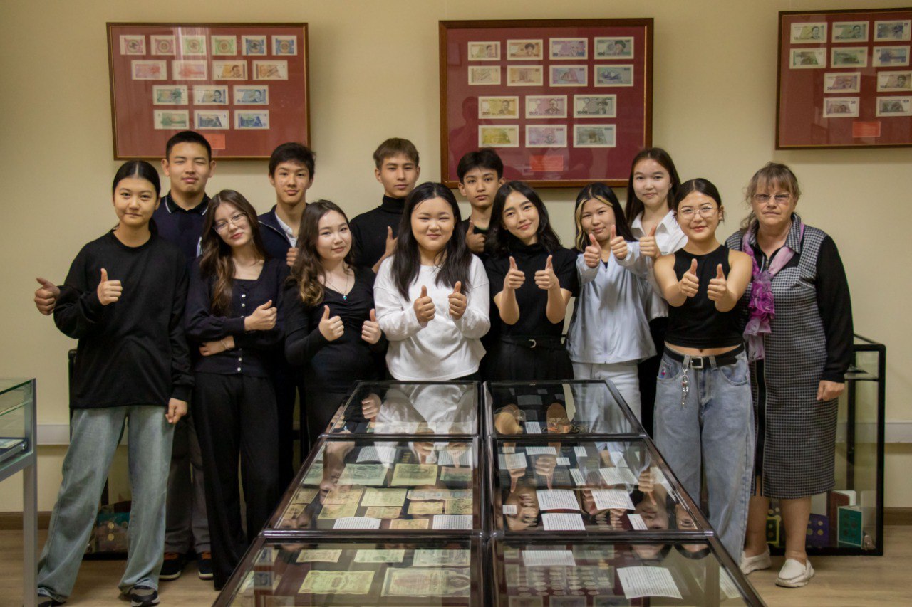 Гостей встречала главный специалист отдела финансовой грамотности Национального банка Анара Сабыр кызы. В одно время со мной на экскурсию пришли школьники. Честно говоря, вид у них был не самый веселый и заинтересованный — ребята ждали банальной и скучной лекции об истории сома. Но формат экскурсии для них стал сюрпризом.