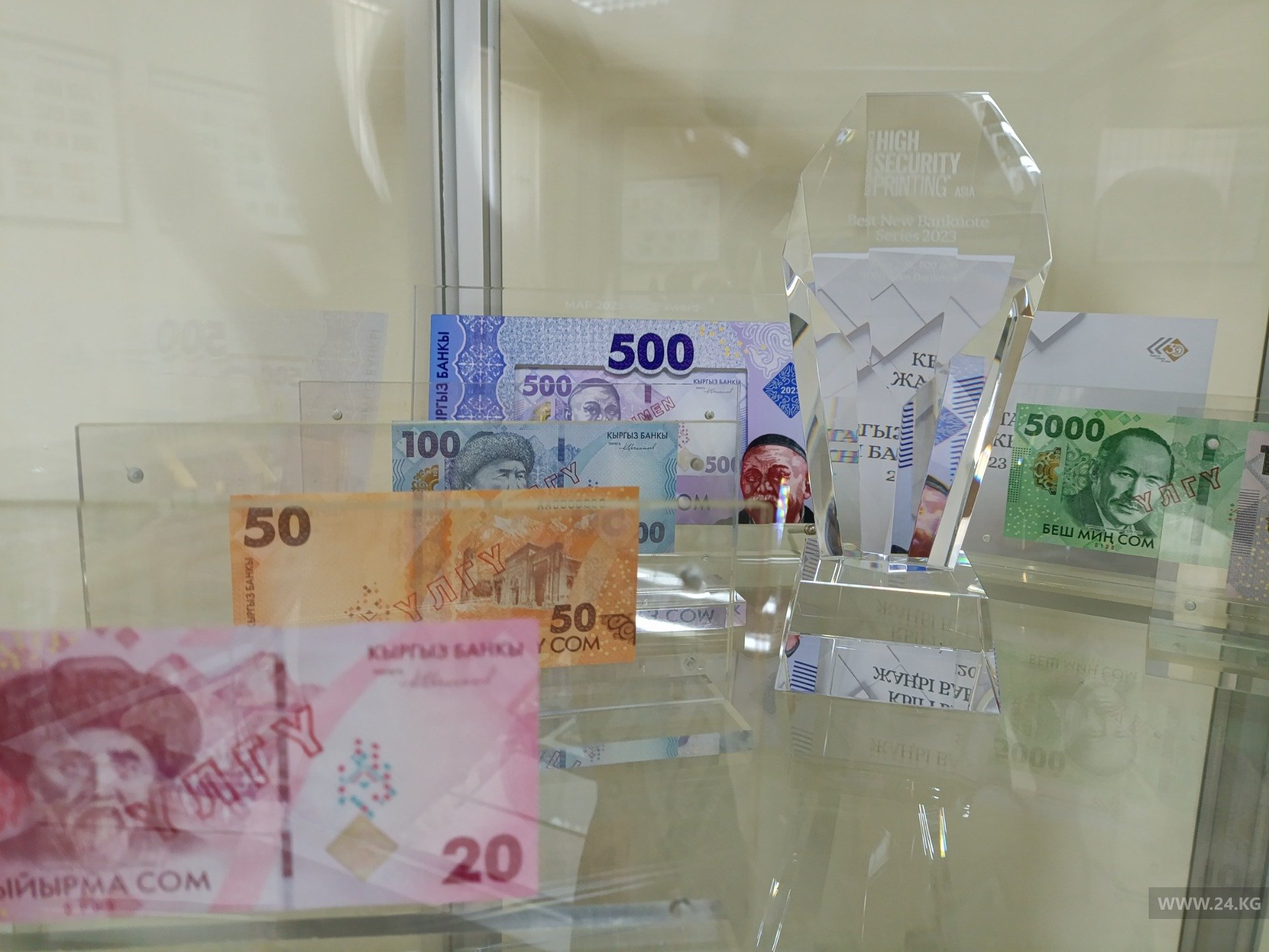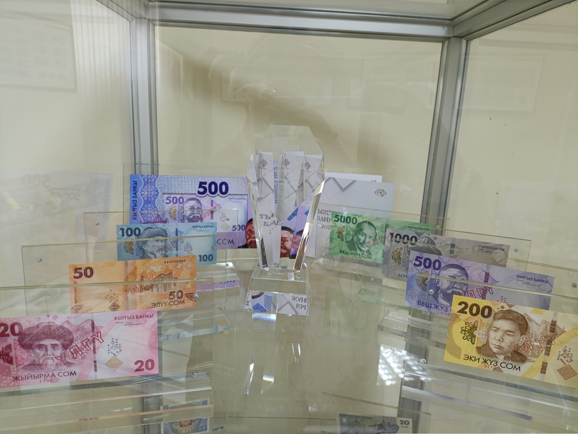 Конечно, здесь и награды, которых удостоились кыргызские сомы. Напомним, что национальная валюта Кыргызстана считается одной из самых красивых в мире. Наши банкноты регулярно получают призы на специальных конкурсах.