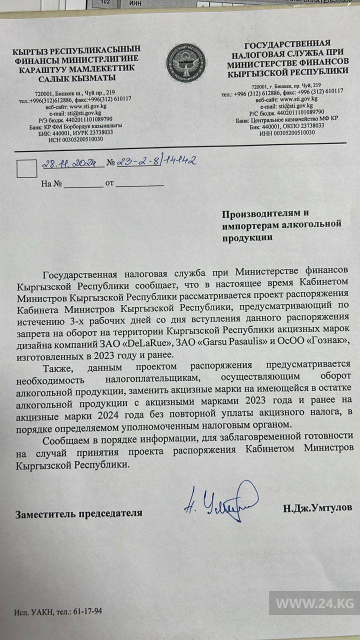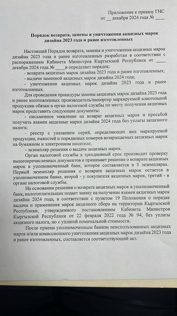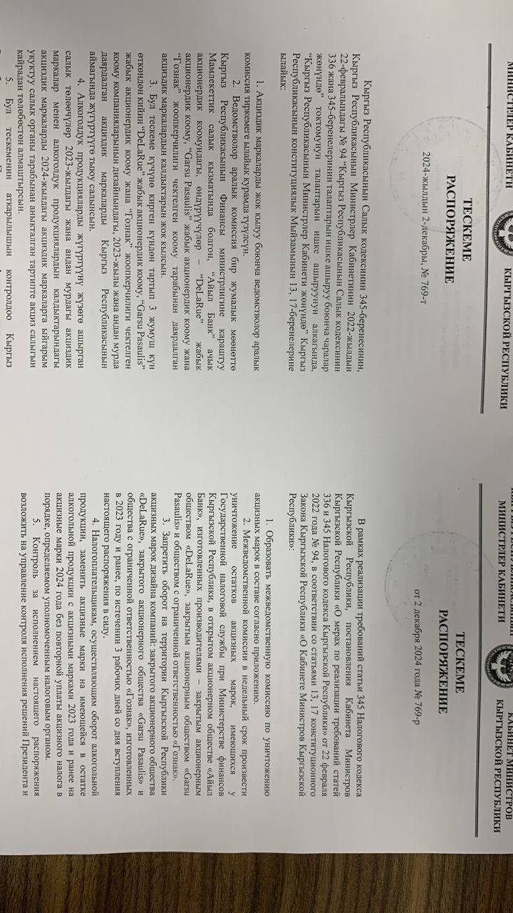 «Приказ председателя Государственной налоговой службы нам отправили частями. Там говорится, что мы в течение трех дней должны заменить акцизные марки. На документе нет подписи главы кабмина Акылбека Жапарова. Наши работники уже вторые сутки переклеивают марки вручную», — возмутились они.