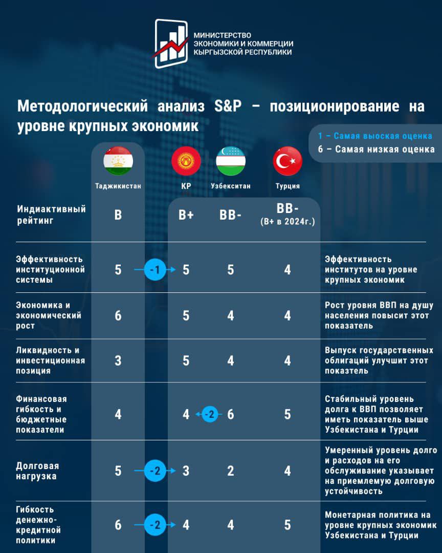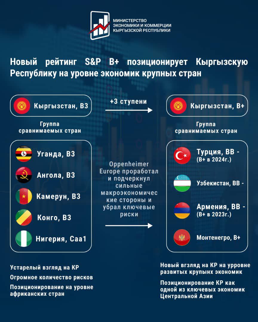 Для частного бизнеса внутри страны повышение суверенного рейтинга также имеет важное значение. «Корпоративные рейтинги компаний и банков Кыргызстана будут ориентироваться на суверенный рейтинг, что облегчит им доступ к финансированию», — отметил министр.