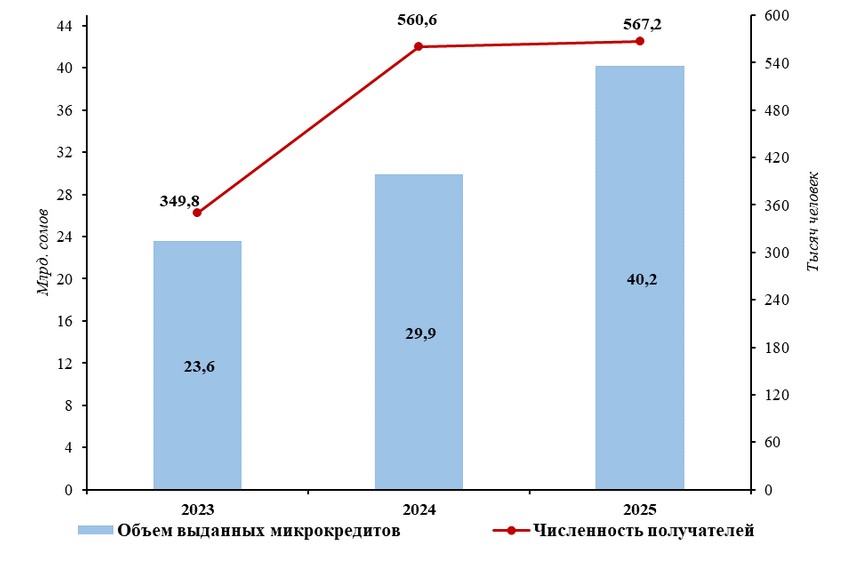 За шесть месяцев 2025 года микрокредитные организации Кыргызстана выдали кредитов на сумму более 40 миллиардов сомов, число получателей превысило 567 тысяч человек. Об этом сообщил Национальный статистический комитет.