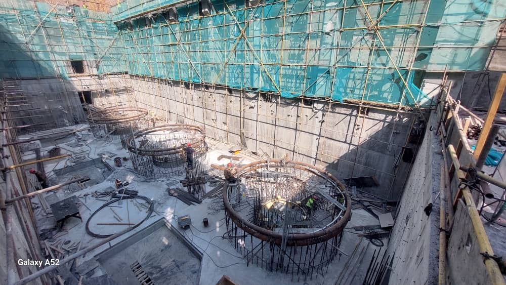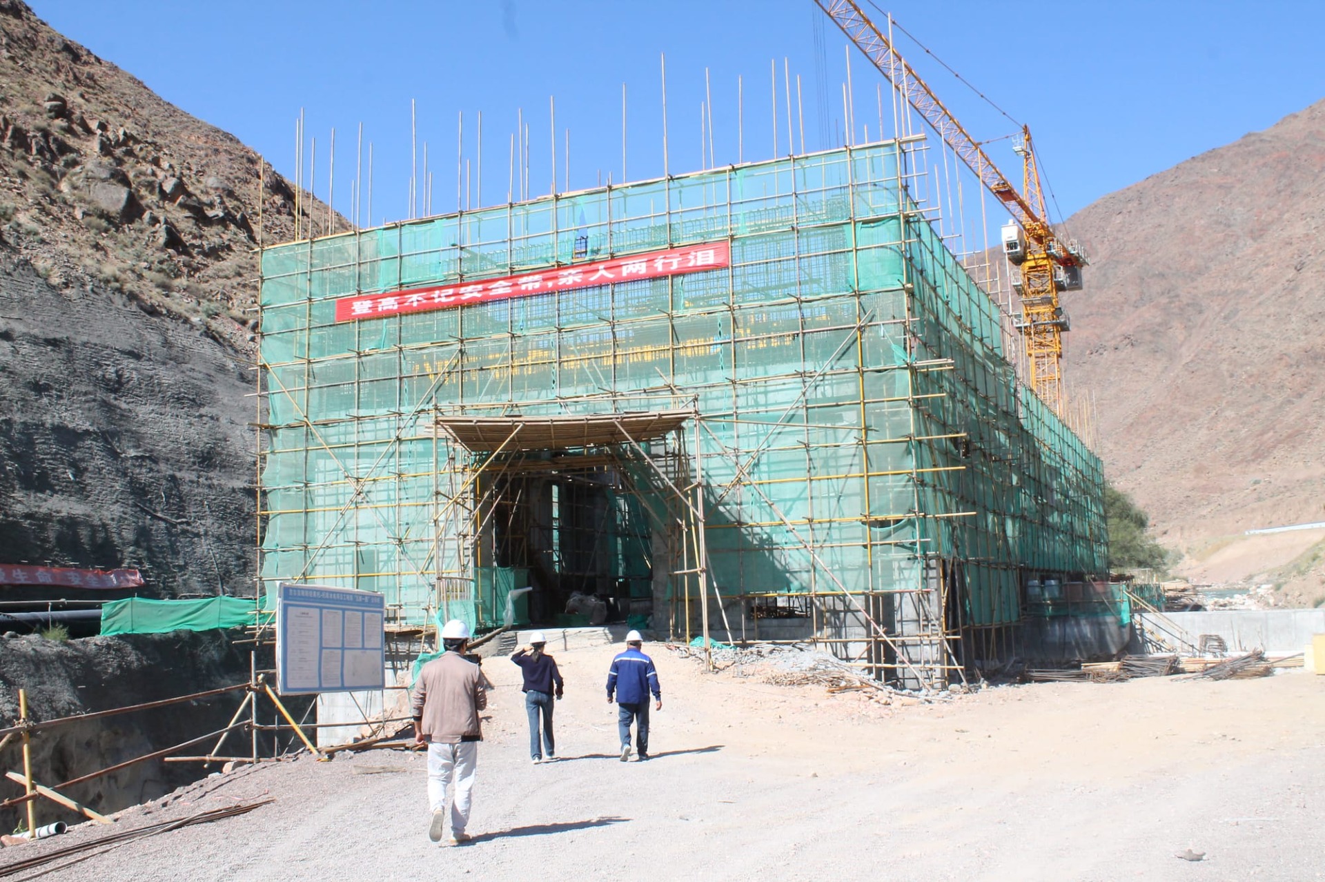 Рабочие проводят монтаж и сборку спиральных камер гидроагрегатов, бетонирование водоприемной шахты, арматурно-опалубочные работы помещений оперативного управления и распределительной установки РУ-10 кВ, а также монтаж стальных опор и бетонирование тоннеля.