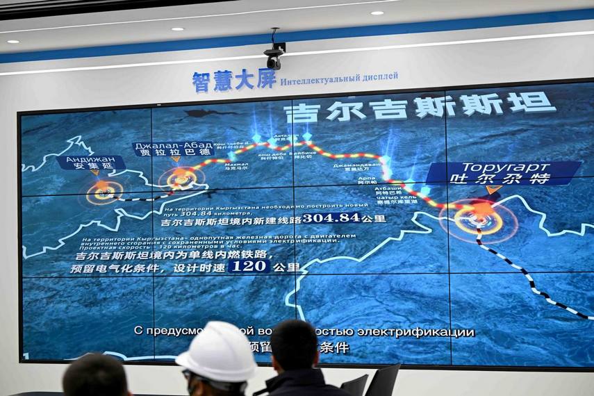 - Железная дорога «Китай — Кыргызстан — Узбекистан» по территории КР проходит по маршруту Торугарт — Арпа — Кош-Добо — Макмал — Джалал-Абад и имеет общую протяженность 304,94 километра.