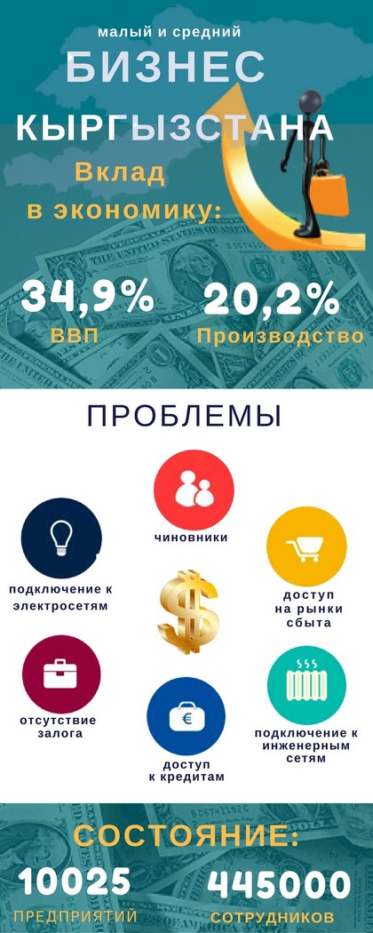 Однако не менее существенные показатели может выдать малый и средний бизнес Кыргызстана. На сегодня он занимает почти 40 процентов в структуре ВВП. В секторе трудятся почти полмиллиона человек. И это по официальной статистике.