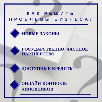 Например, правительство предлагает бизнес-ассоциациям самостоятельно решать свои проблемы. А у них нет достаточных ресурсов, например, для разработки законопроектов. Сейчас выручают международные организации, которые помогают малому и среднему бизнесу. Но в целом проблему это не решает. Предприниматели готовы говорить о трудностях, но чиновники в большинстве случаев на помощь в их преодолении тратить время не хотят.