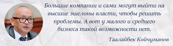 «У нас многие спрашивают: почему при либеральных законах и комфортном налогообложении не развивается бизнес? Нужны стимулирующие меры. У нас слишком мало предприятий малого и среднего бизнеса. Они дают лишь 40 процентов ВВП, когда в развитых странах это 80-90 процентов. Проблема в том, что у нас сложно начать дело», - уверен Руслан Акматбек.