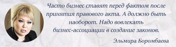 «Бизнес-ассоциации показали себя надежными партнерами в государственно-частном диалоге. Однако для их институционального роста и развития необходимо пересмотреть государственную политику по отношению к данным институтам. Вопрос роли ассоциаций в регулятивной политике предпринимательства крайне актуален и требует оперативного решения», - рассказывает глава Национального альянса бизнес-ассоциаций Эльвира Боромбаева.