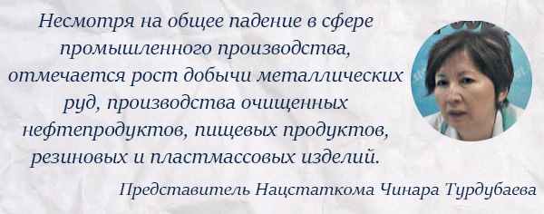 Без учета предприятий по разработке месторождения Кумтор картина ВВП более радужная – 241,2 миллиарда сомов и рост в 2,1 процента. Но в стране продолжает падать промышленное производство – на 8,3 процента с начала года. Это связано с существенным сокращением объемов выпуска продукции в текстильном производстве (на 38,6 процента), производстве одежды (на 20,3 процента) и драгоценных металлов (на 9,4 процента).