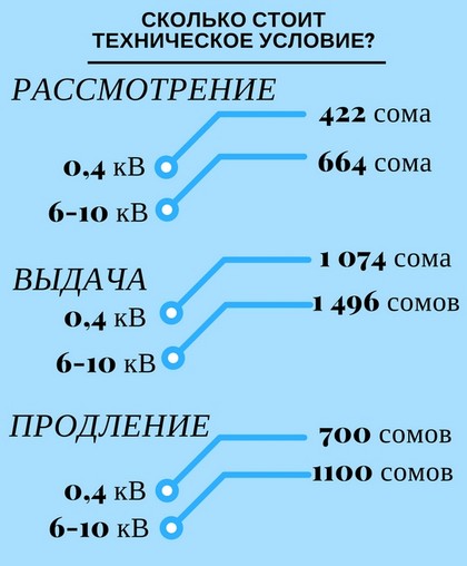 Возмущение экспертов обосновано расчетами. Например, при открытии небольшого нового предприятия в Ошской области, которое будет использовать примерно тысячу киловатт, учредителям, кроме строительства здания, приобретения оборудования и других расходов, надо заплатить «Ошэлектро» 3 миллиона 692 тысячи 160 сомов за подключение к сети. Сумма немаленькая, и это может затормозить открытие новых предприятий.