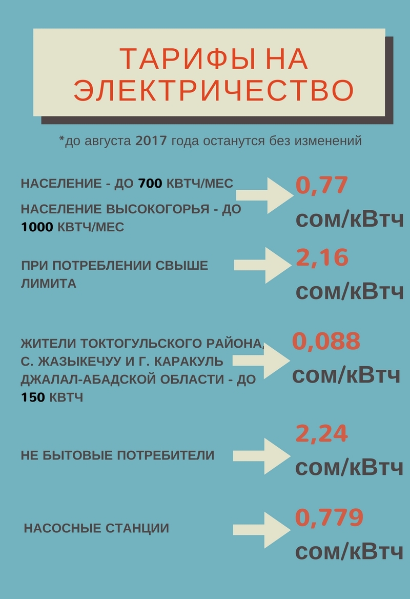 По его словам, в Кыргызстане повышение тарифов временно заморозили. В течение года специалисты будут работать над новой стоимостью на электроэнергию. «Решение не повышать тарифы принято в условиях экономического кризиса и сложного социального положения населения, тарифы на электрическую и тепловую энергию в этом году остаются на прежнем уровне. Пока сложно сказать, насколько они в будущем повысятся», - сказал Таалайбек Нурбашев.