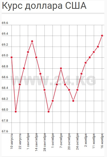 Продавать доллары Нацбанк вынужден из-за дефицита на рынке. Однако проведенные интервенции результатов пока не дают, и доллар в КР продолжает расти. С начала недели он подорожал еще на 20 тыйынов. Сегодня обменные пункты столицы и коммерческие банки покупают доллар по 69-69,25 сома, продают по 69,3-69,4. Номинальный курс установлен на отметке 69,1357 сома (рост за сутки –0,27 процента).