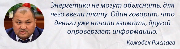 Ранее Национальный энергохолдинг предложил ввести плату за подключение, а Государственное агентство по регулированию топливно-энергетического комплекса с радостью поддержало инициативу, установив ставку на уровне 3,5 тысячи сомов за киловатт.