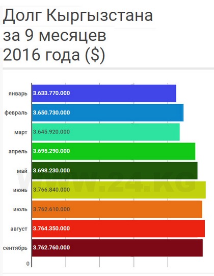 В 1992 году Кыргызстан взял кредитов на $4,9 миллиона. С каждым годом аппетиты росли, и к 2002 году долг достиг $1,5 миллиарда, а к сентябрю 2016-го – $3,7 миллиарда.