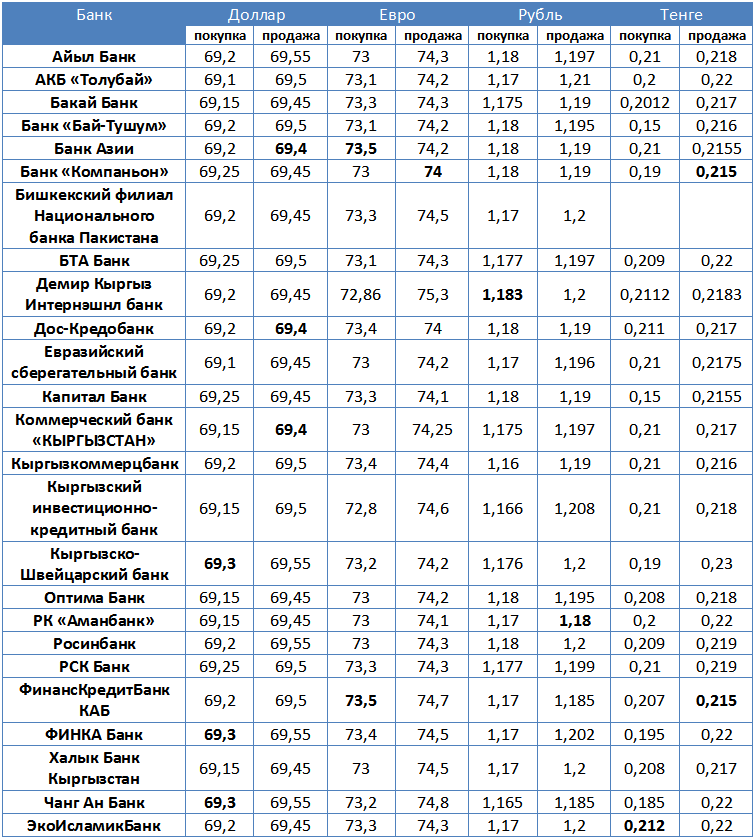 Курсы указаны для наличного обмена валют. Данные получены с сайтов коммерческих банков. В случае возникновения вопросов по представленным данным следует обращаться непосредственно в коммерческие банки.