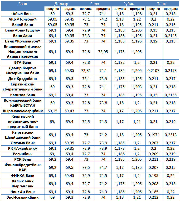 Курс доллара в коммерческих банках Кыргызстана на 14 февраля