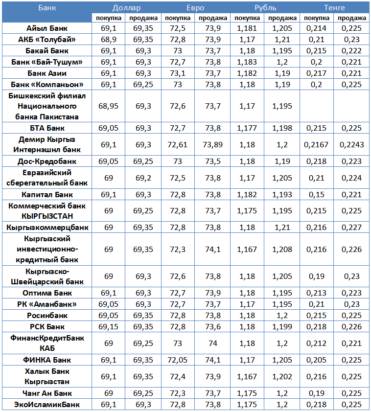 Курс доллара в коммерческих банках Кыргызстана на 1 марта