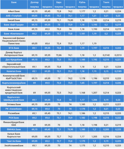 Курс доллара в коммерческих банках Кыргызстана на 6 марта