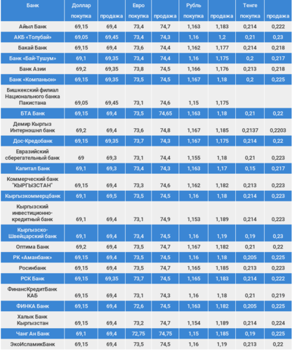 Курс доллара в коммерческих банках Кыргызстана на 13 марта