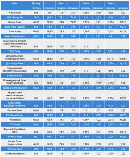Курс доллара в коммерческих банках Кыргызстана на 27 марта
