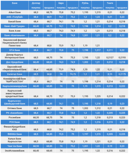 Курс доллара в коммерческих банках Кыргызстана на 28 марта