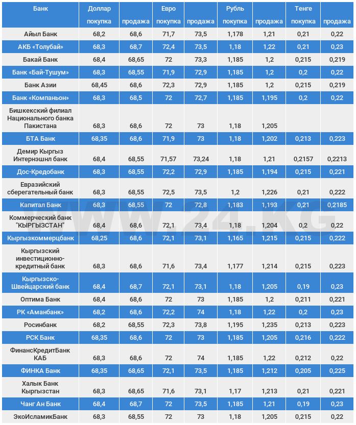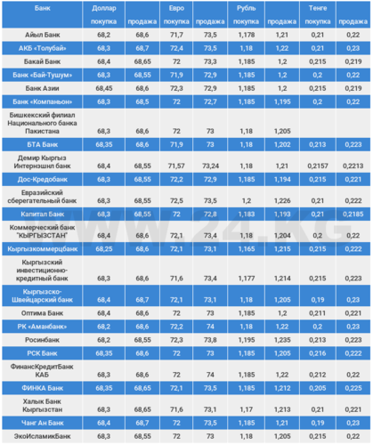 Курс доллара в коммерческих банках Кыргызстана на 10 апреля