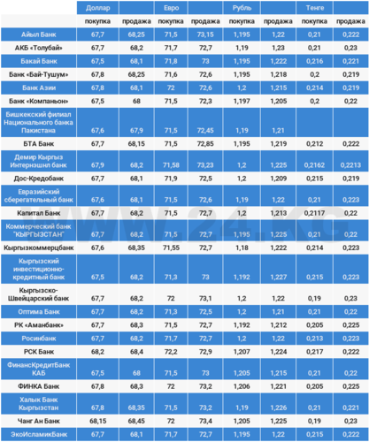Курс доллара в коммерческих банках Кыргызстана на 17 апреля