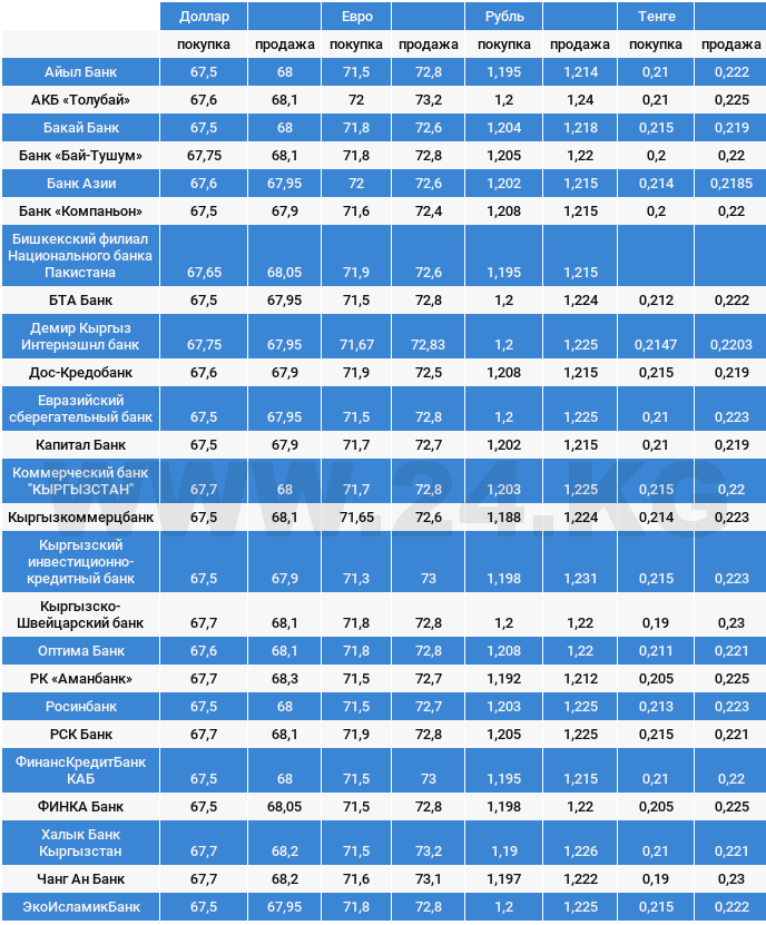 Курсы указаны для наличного обмена валют. Данные получены с сайтов коммерческих банков. В случае возникновения вопросов по представленным данным следует обращаться непосредственно в коммерческие банки.