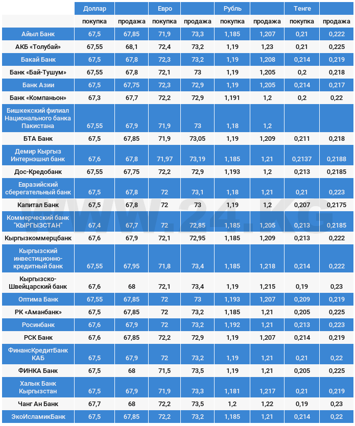 Курс доллара в коммерческих банках Кыргызстана на 20 апреля