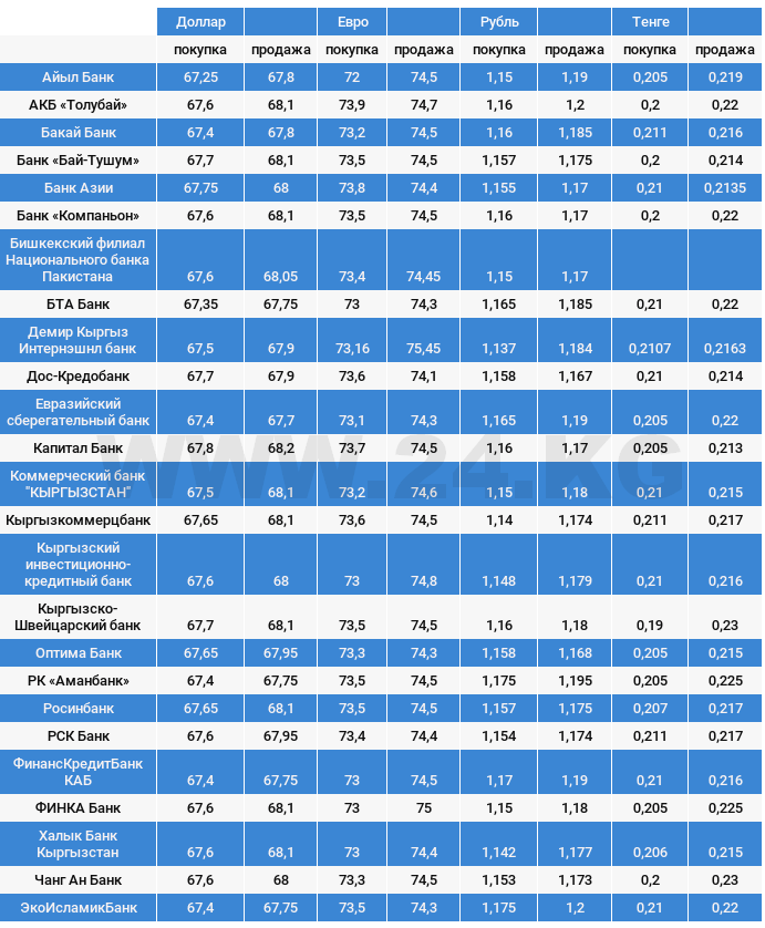 Курс доллара в коммерческих банках Кыргызстана на 10 мая