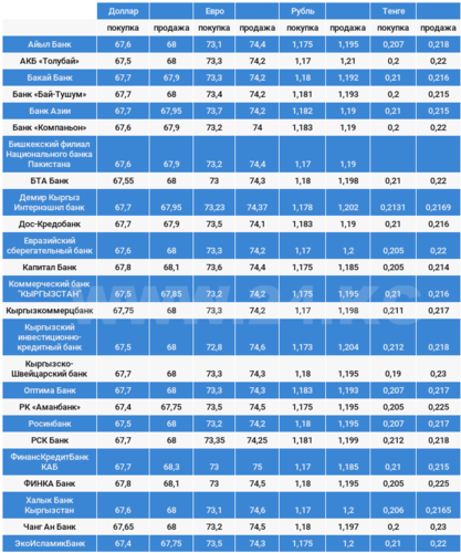 Курсы указаны для наличного обмена валют. Данные получены с сайтов коммерческих банков. В случае возникновения вопросов по представленным данным следует обращаться непосредственно в коммерческие банки.