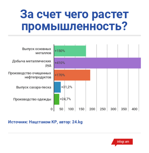 Правда, без учета предприятий по разработке месторождения Кумтор картина более радужная. Объем промышленной продукции оценивается в 39,6 миллиарда сомов с ростом в 24,5 процента к 2016 году и падением на 6,9 процента по сравнению с 2015-м.