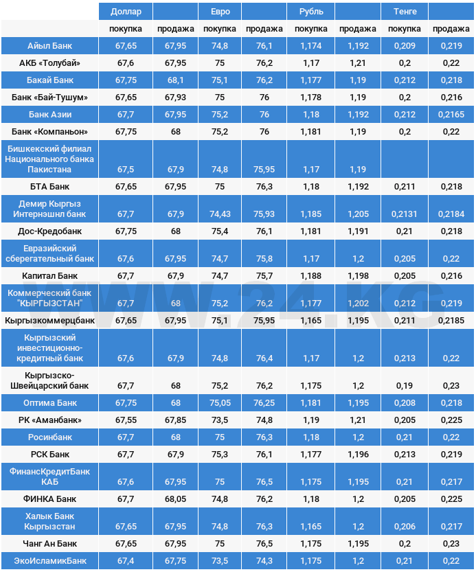 Курс доллара в коммерческих банках Кыргызстана на 18 мая