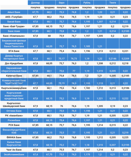 Курс доллара в коммерческих банках Кыргызстана на 24 мая