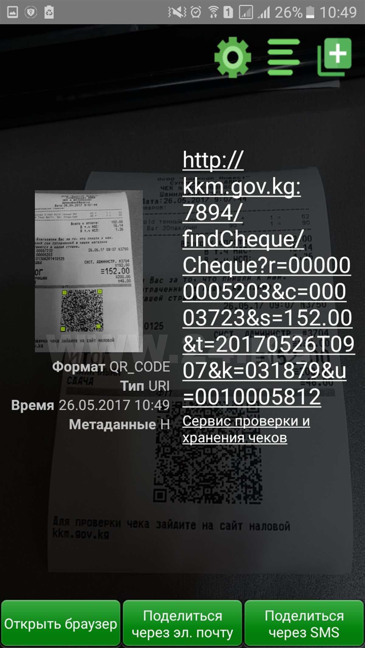 Как оказалось, на практике именно эта система работает четко и без сбоев. Для эксперимента мы скачали первую попавшуюся программу считывания штрих-кодов, запустили ее, она автоматически выдала всю нужную информацию. Причем просканировать и получить данные удалось по обоим чекам. Хотя в ГНС предупреждают, что иногда информация в базе может появляться с небольшим опозданием.